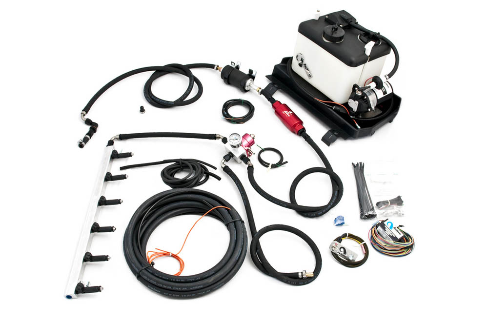 The stage 2 System boosts the S54's power output to over 600BHP and includes an upgraded fuel system (includes two fuel pumps, fuel filter, all new -6 lines, fuel pressure regulator, dead end fuel rail, upgraded injectors and all required fittings). This ugpraded fuel system is a must once reaching these increased boost levels due to the fact that the factory fuel system is simply inadequate at this level. The stage 2 system also use a larger front mount air to air intercooler and AA's methanol injection system.