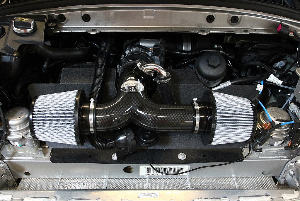 Improves cold air induction into the engine and improves power and sound through the rev range; constructed with genuine carbon fiber for strength and durability.