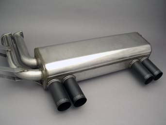 If you've been searching for a truly high performance rear muffler for your M3 look no further. Dinan's unique muffler design effectively reduces back-pressure for improved flow, resulting in measurable power gains. Manufactured from 304 stainless steel inside and out for superior resistance to corrosion as well as a significant reduction of weight. And from those aggressive looking ceramic-coated tips flows an exhaust note that will be music to the driving enthusiast's ears.