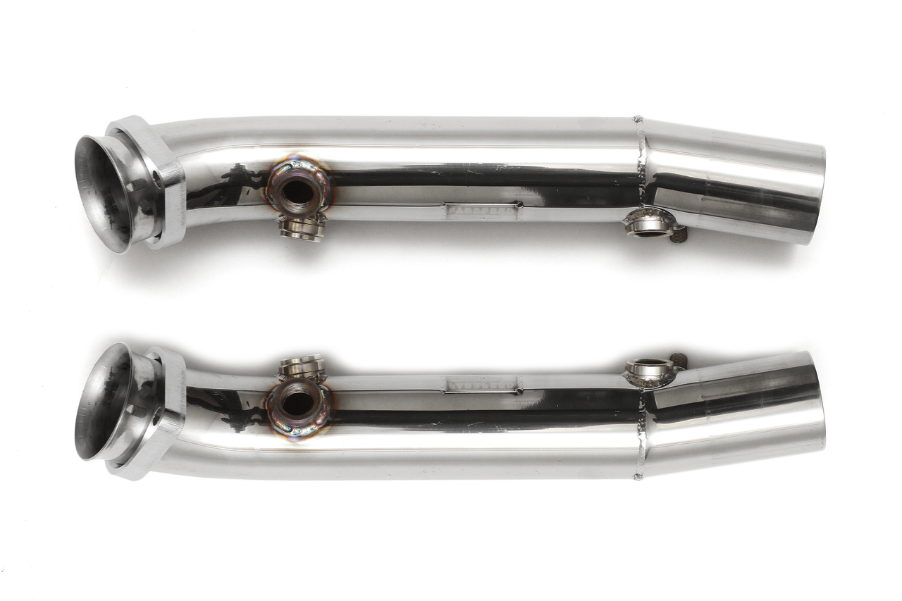 Replaces the restrictive factory catalytic converters with much less restrictive straight-through pipes for maximum flow and performance.