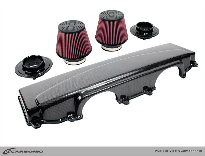 With a power train derived from the fantastic Lamborghini Gallardo LP560-4 the V10 powered Audi R8 offers true supercar performance. Its 5.2L engine derives a healthy boost from the added airflow offered by a Carbonio airbox. Venturi shaped air filters mated to a carbon fiber inlet housing makes for very efficient breathing, which increases both the power and torque of Audi’s flagship model.