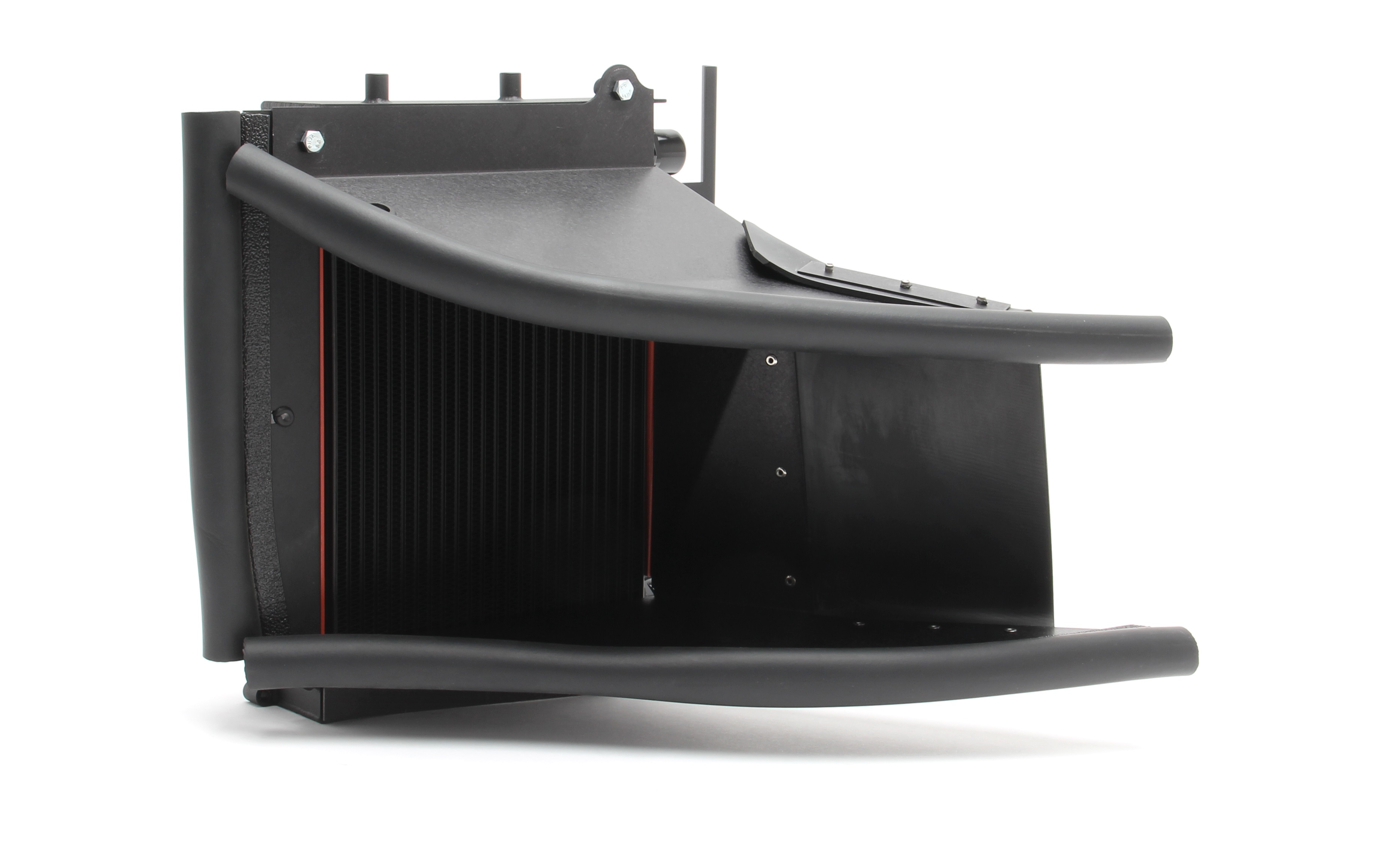 High Performance Intercooler (D330-0010B): Greater power gains are achieved with a larger high performance intercooler. The Dinan® intercooler offers double the volume of the stock unit, substantially reducing the pressure drop by 0.7 psi, as well as providing more efficient heat exchange. "Cool down" time is also reduced, enabling the cars to produce full power under varying driving conditions such as stop and go traffic. The system has been engineered as a direct replacement for the stock unit, requiring only minor modifications for a clean, factory-like installation. The intercooler also features larger connector tubing and custom shrouding for maximum efficiency.