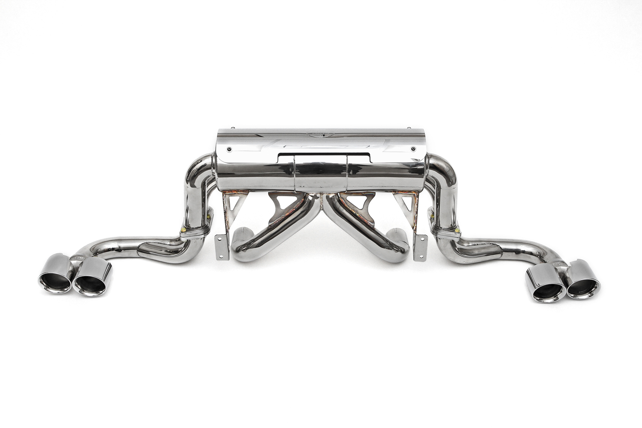 Dramatically improve sports car sound and throttle response with upgraded Maxflo mufflers; this system re-uses your factory tips
