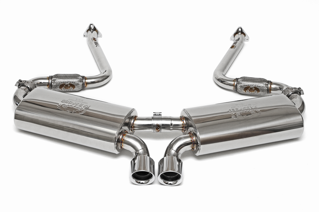 Dramatically improve sports car sound and throttle response with upgraded Maxflo mufflers and inlet tubing. Includes Deluxe Bolt-On Tips in Polished Chrome, Black Chrome, or Carrera GT Style Tips. Please specify when ordering