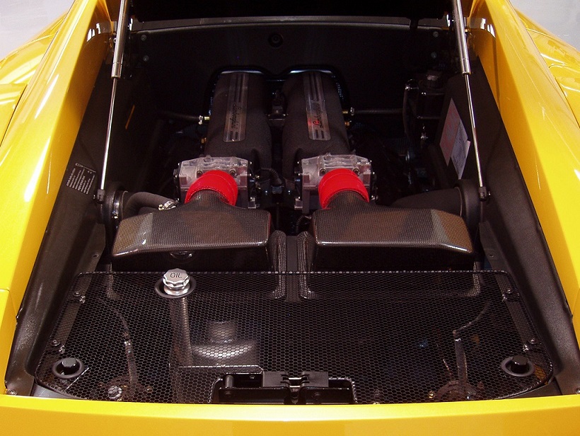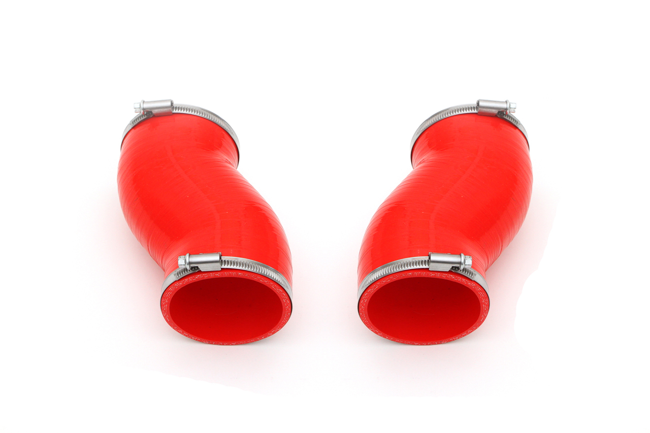 Shiny RED Silicone rubber high-performance intake hoses that are simple direct replacement parts for factory Gallardo stock black rubber hoses
